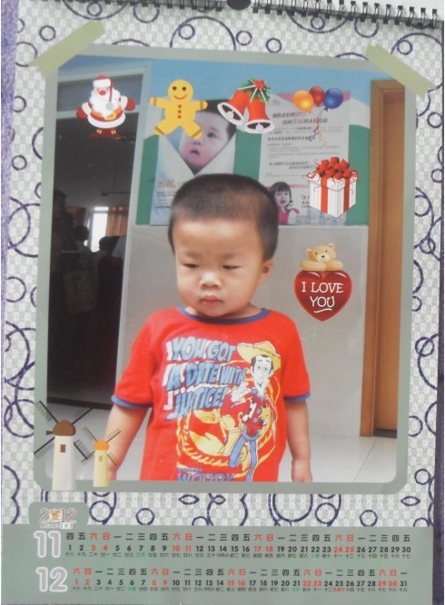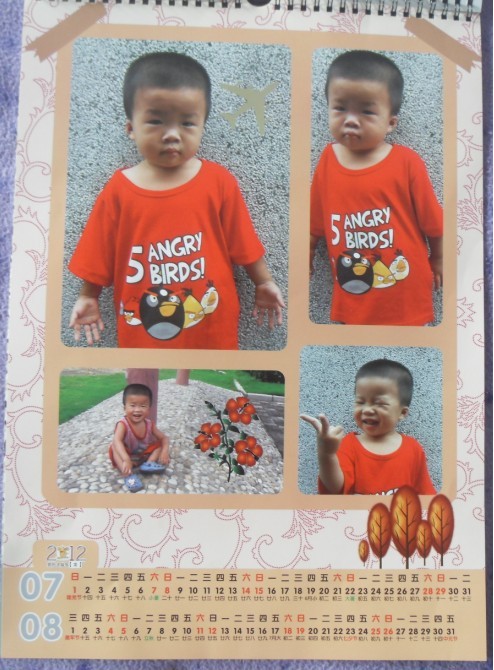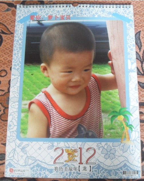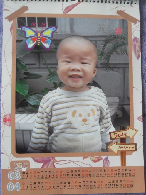 之前只给宝宝做过台历,挂历还没有DIY过呢。赶在2012年,给家里的宝宝制作了一本有福的竖式个性挂历7页。
