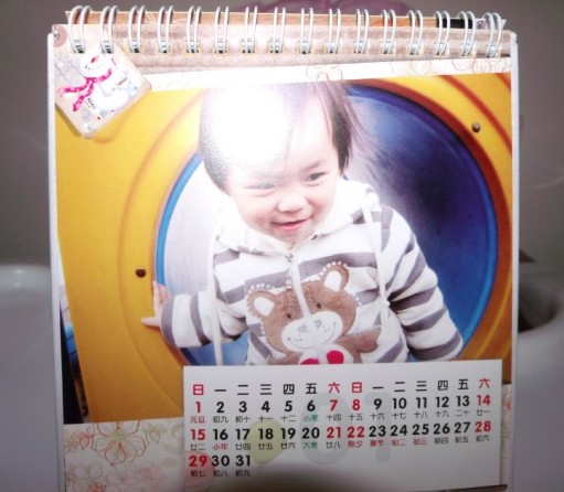 > 时尚个性台历7寸体验:小小的台历,大大的惊喜这是我第一次在有福网制作个性台历,总体感觉还是很方便。首先是操作界面,很简单,像我这样的新手,一看就明白了。各种模板也比较漂亮,每一款都让人耳目一新,只是风格不同,最终我选择了这款带有小熊图案的可爱的模板,适合用于制做儿童照片台历。制作很快捷,只需添加自己喜欢的照片,然后加到每张页面上去,照片可以调整大小、颜色,最后点击确定。这时有福提醒我,7月份的页面上少传了一张照片,我一看,果然是我的大意,赶紧补上照片。有福网真是好贴心!后来在制作过程中会给我发邮件,提醒我台历已在制作中,或是已在发货中,还把快递单号给我了。从制作台历到拿到台历,也就几天时间,算是很快了。下面就来晒一晒这本个性台历,晚上拍的照片,并不清楚。但产品质量很好,十分不错。