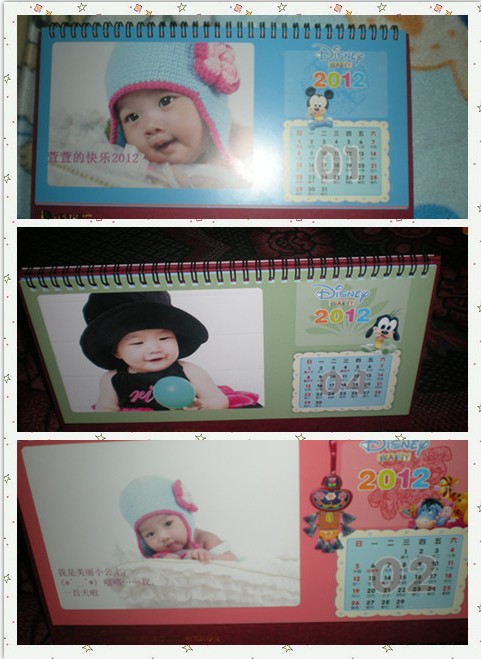 嘻嘻……做了有福网的个性台历很不错,这个台历做来寄给了父母,让他们也看一下他们的外孙女。