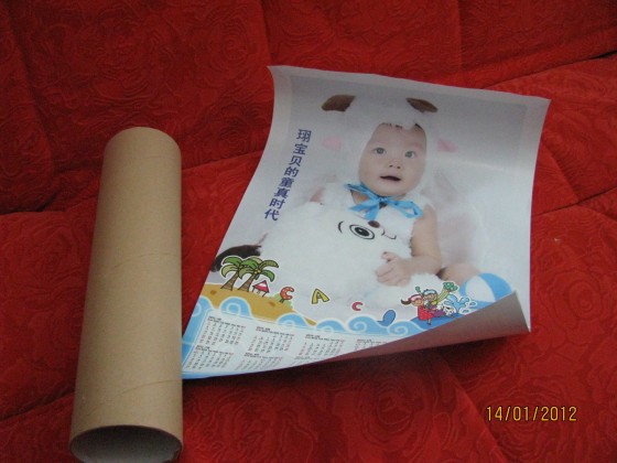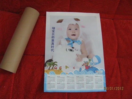 顾不上其他的,马上进入有福网,制作个性年历。一看有福网的页面,就可以明显地感受到他们是正规的有规模的公司来的,光是用户就接近60万,影响力够大的呀!随意地浏览一下产品列表,有照片冲印、有台历挂历、木版画、照片书、影楼相册、个性T恤、杯子等种类还挺繁多的。再看一下价格,邻居前段时间在本地一家影楼为宝宝做了个7寸六页的台历39.9元,这里的7寸的才29.9,还是13页的呢!哇,巨划算!怀着激动的心情,我点击下载了有福艺术家软件,按照软件页面的提示,一步一步开始了我为宝宝制作的海报年历。丝毫没有想象中的复杂和难懂,三下两下就选好了模板和风格,还加上了个性的签名呢!浏览一下效果还不错哦!按照说明,共享以及下订单。接下来要做的就是等待了~~~~~~~~~
