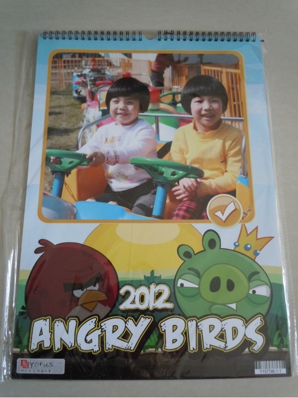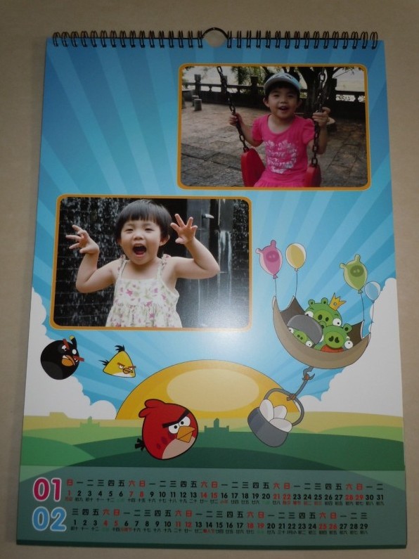 去年年底参加了摇篮网的有福个性挂历活动,获得了优惠券。因为年前就回老家去了,一直等到二月中旬回来才看到优惠码,就赶紧找了一些照片,选了今年最流行的【愤怒小鸟】模版,也是为了多放几张照片,预览了几遍感觉不错,马上上传订购了。