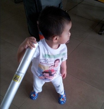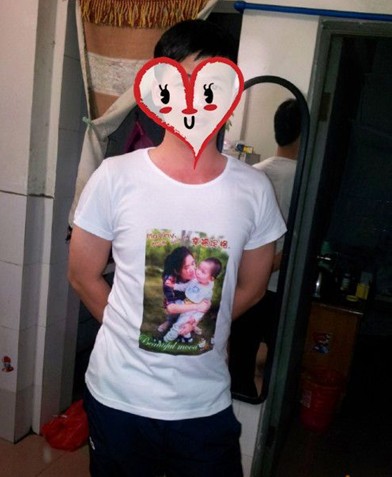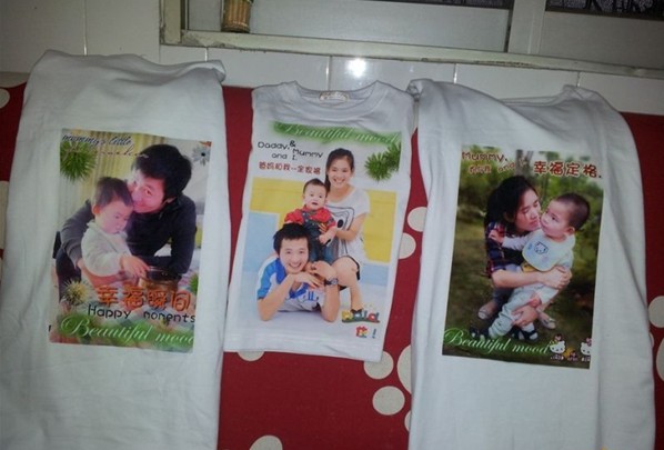 亲子装的相片个人还是很喜欢的,洛洛一穿上这个性T恤就指着肚子给人家看,嘻嘻,自豪着吧!我和洛爸穿着他也指着相片"啊,啊,啊"的.....
