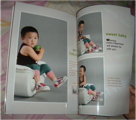 这杂志的质量真是超好!难怪他的售价能达到五十多~~拿给同事看,她们说,每年花钱给孩子做这么一两本都是很值得的!多有纪念意义啊,比水晶相册实用多了~~