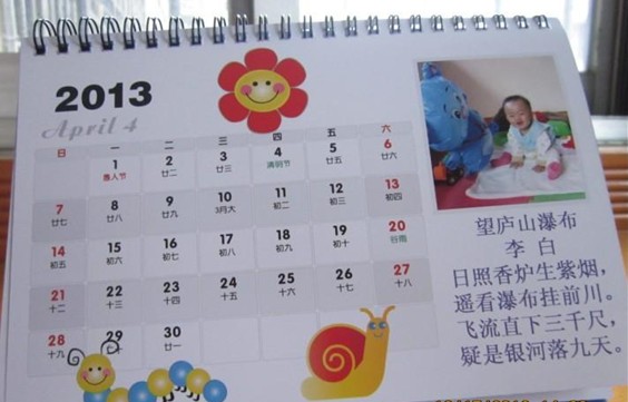 > 传统个性台历8寸体验:超棒的2013年有福台历一直是有福网的粉丝。最近刚给女儿制作了一本个性台历。有福的台历是在线制作线的,因而不用安装软件,只需打开后选择要做的台历类型和模板,再把选好的相片上传,然后再把相片一张张的放入模板内,也可以自动添加。