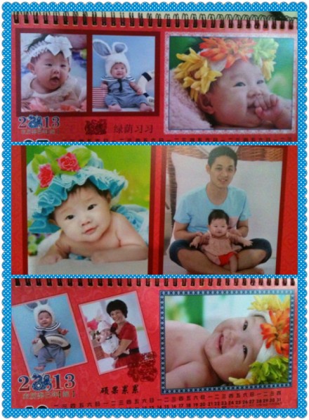 很意外的宝贝,没想到自己这么幸运,申请成功了,能够把宝宝的照片设计到台历中,很个性,也很有意义哦,下面我传一下我家的漂亮妮妮,大家快来欣赏吧~~