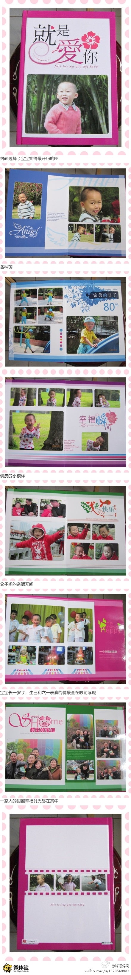 宝贝一天天长大,相信大家电脑里都存着无数经典的PP吧,有没有感觉还是纸质的PP拿到手里才觉得更实在,才有过去看照片的感觉?于是我选择了在有福网做成一本一本的相册,和影楼相册比更实惠,根据模板可以自己调整版面和选择照片,这是我刚做的去年一年宝宝成长的记录,印刷非常精美!