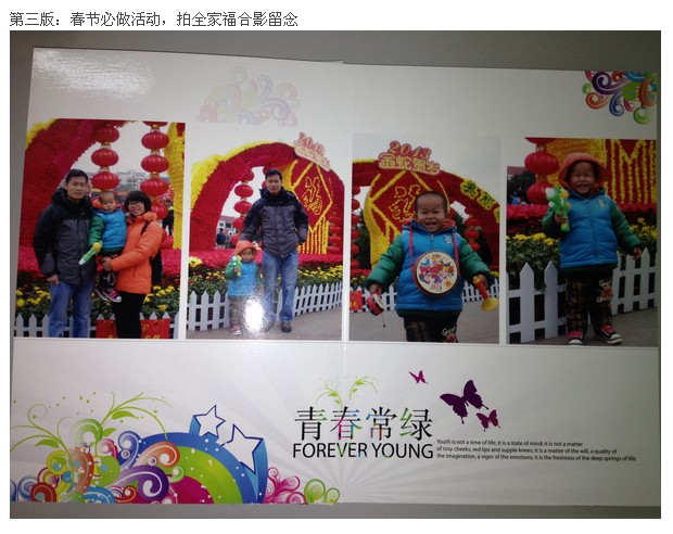 在有福网有做了一本相册。到某论坛上领取的优惠券,2013年3月31日前有效。怕过了期,浪费一个美好的相册,于是又花了2个中午休息时间,赶制作了这本主题为“青春常绿”的相册。这次的相片全部取材于2013年春节假期那几天我们的活动。