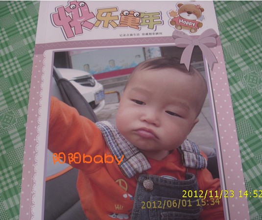 前些天在有福网上做了照片书,寄过来了,看着挺好看的。特意为阳阳选了“快乐童年”这款。