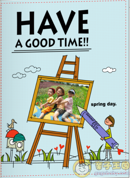 我选的这个模板是QQ版,走可爱路线,配上小朋友的相片,效果挺好的。我相信如果用专业相机拍的相片,出来效果将会更美!