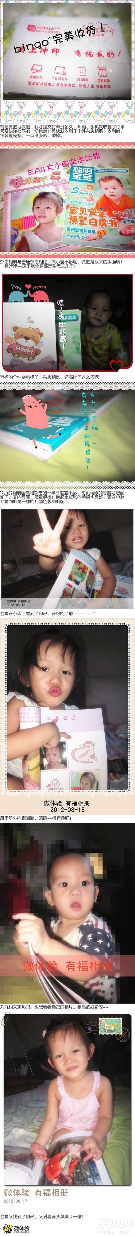 不知真相的外婆看到了相册,第一句话居然是:“哇,七喜上了杂志封面了呀!”后来我忙解释这是有福的杂志相册,外婆才反应过来还有这样形式的相册~~太新潮了!我看到孩子这么幸福的笑容,这次真的要谢谢有福网举办的活动,我一定会好好珍惜这本特殊的相册的!@有福网官方微博 @一起微体验