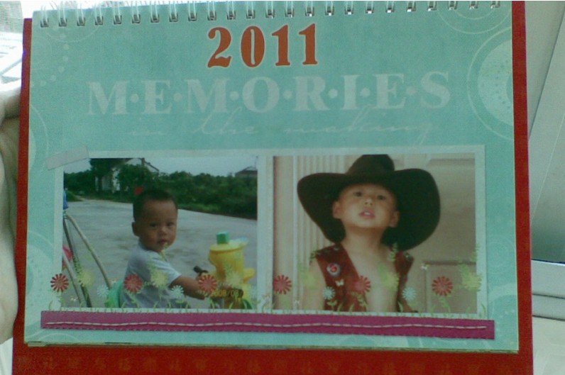 我是一个懒妈,晒宝贝儿子的台历是一拖再拖,直到2011年将近尾声,才想起了年初在有福网上为儿子亲手DIY的个性台历。