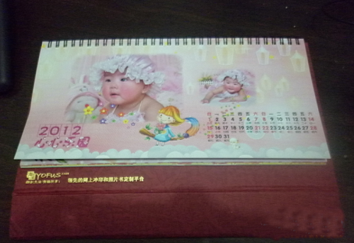 第一次知道有福网,知道个性台历的存在,嘻嘻,落伍了。经过朋友的介绍,决定给宝宝制作一本2012年的宽幅台历11X6英寸个性台历。