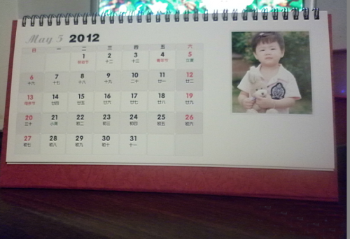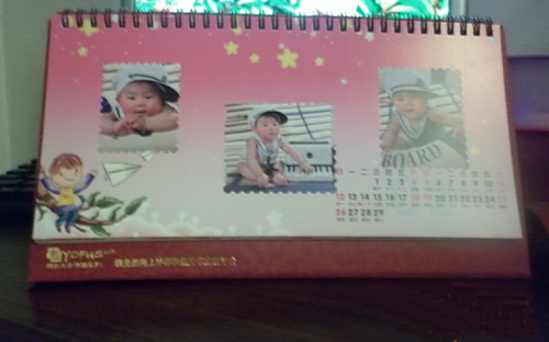 做好后支付了费用,大约3天左右就发出了,神速啊,很快收到了台历,好喜欢哦,比想象中的要大,也很有纪念意义啊,上面都是宝贝的照片,承载着我的辛勤劳动成果,晒一下PP吧。