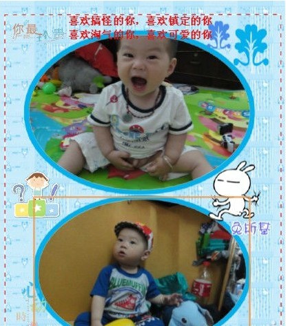 我选择的是卡通类型的,孩子嘛就该是缤纷多彩的童乐世界,卡通可爱就是最具幻彩斑斓的代表。而选择兔斯基是因为它可以放的相片多一些,可以珍藏的美好回忆就多一些。可是可选择的卡通图案貌似少了些,像我喜欢HELLO KITTY、流氓兔、蜡笔小新、米奇等更多的卡通图案都可以增加,这样消费者的选择也会多一些,毕竟咱们红人群里好多妈妈都是选同一款式的模版,感觉没多大的区别,只是相片不同而已,有点“撞山”的感觉。再者2012年是龙年,挂历的图案也可以增加龙的图案呀,这样最具代表年份的属相也显得更加有意义。