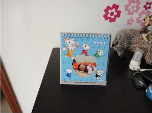 去年,给家里的宝宝制作了一本有福网7寸小台历。放在客厅的沙发茶几上,十分合适。