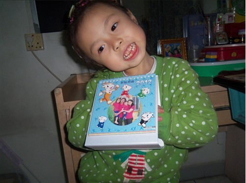 因为没有经验,所以制作的时候就为了方便,只选了第一个可爱牛牛模板,呵呵,没想到当收到台历后,仪宝看到就说好喜欢哦!台历是在昨天11月30日收到了呀,但是相机给宝爸的朋友借去用了呀,没办法,只能今天来拍照来与大家分享快乐O(∩_∩)O哈!