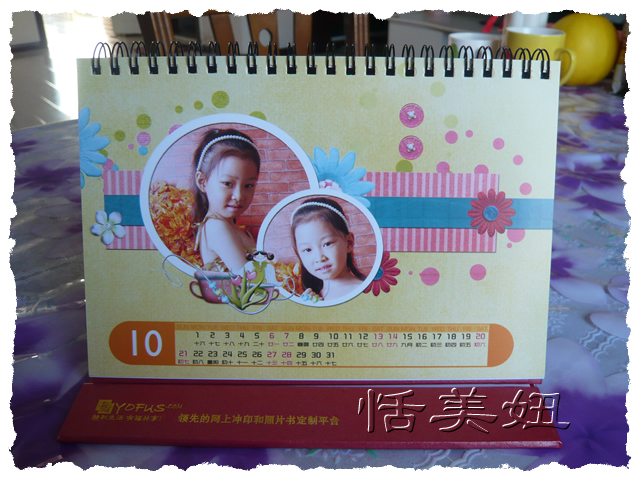 有些心急,今年早早就在沈阳某网,购买了台历,结果是大失所望,漂亮的恬美妞印成了黑妞,实在气愤。有福网在妈咪爱搞活动,我才如梦初醒般,去年在有福做的台历,送给恬恬幼儿园的老师,至今还摆在她的办公桌。那色彩、那纸张、印刷质量都非常棒。为自己当初没再选择有福而懊悔,于是马上动作。