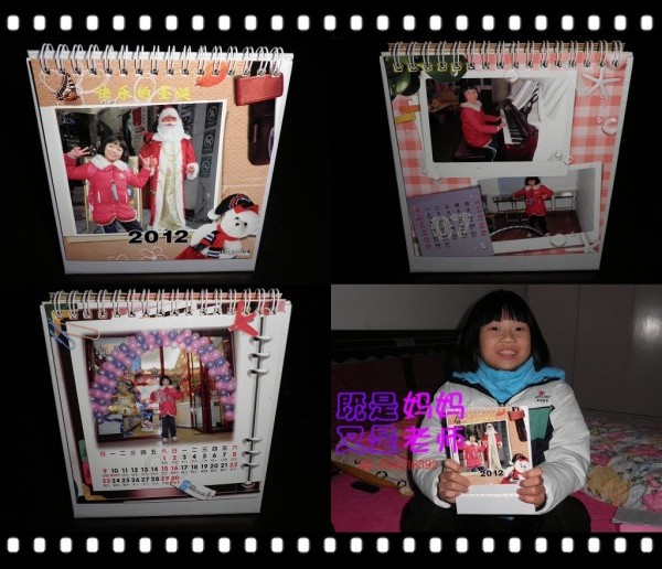 晚上回到家,把这份特殊的礼物送给宝宝,宝宝收到后可开心了,抱着台历呵呵直笑。
